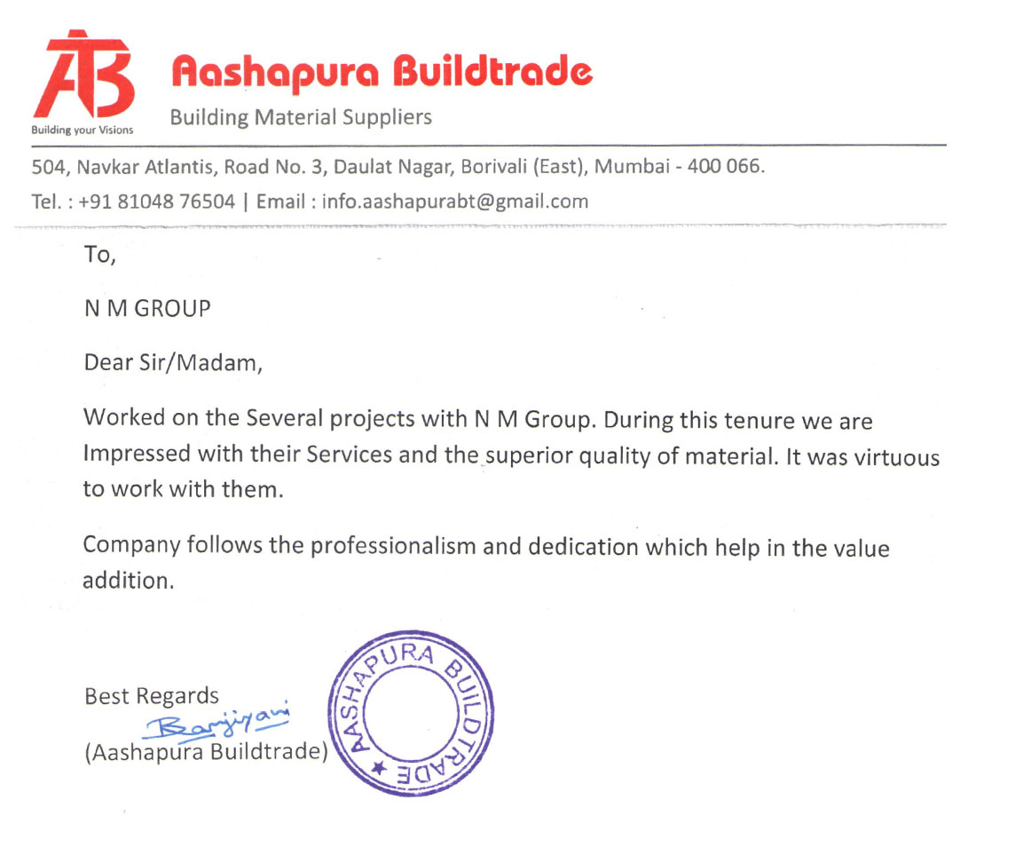 NM group is a association of 5 companies i.e., N M Creation LLP, N M Creation, N M Traders, N M Realtors & N M Roadlines.